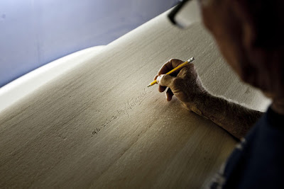 Here's a couple of photos taken by Samuel Lindsay of Bob working on the first 2 of our limited edition balsa pigs. 12 boards will be made all-up, over the next 12 months, and each will be hand-finished and signed by Bob. They are all solid balsa, have a glass-on timber D fin, and an individually numbered copper plaque instead of a decal. These are beautiful collectors boards, and will look great on the wall, or if you're keen, in the water. I'll get more photos up as they come through.Check out the new McTavish site and Bob's blog